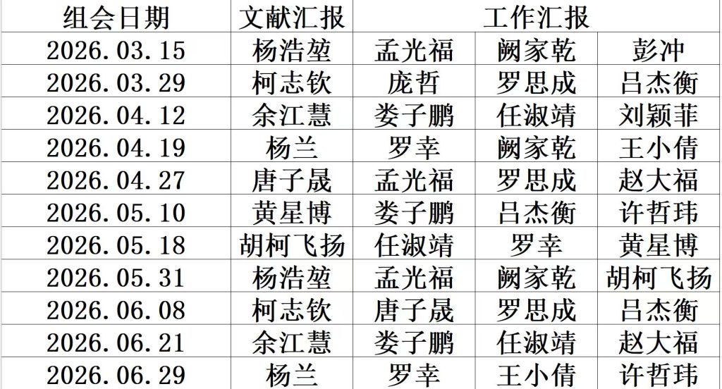 25-26学年(下)组会安排表